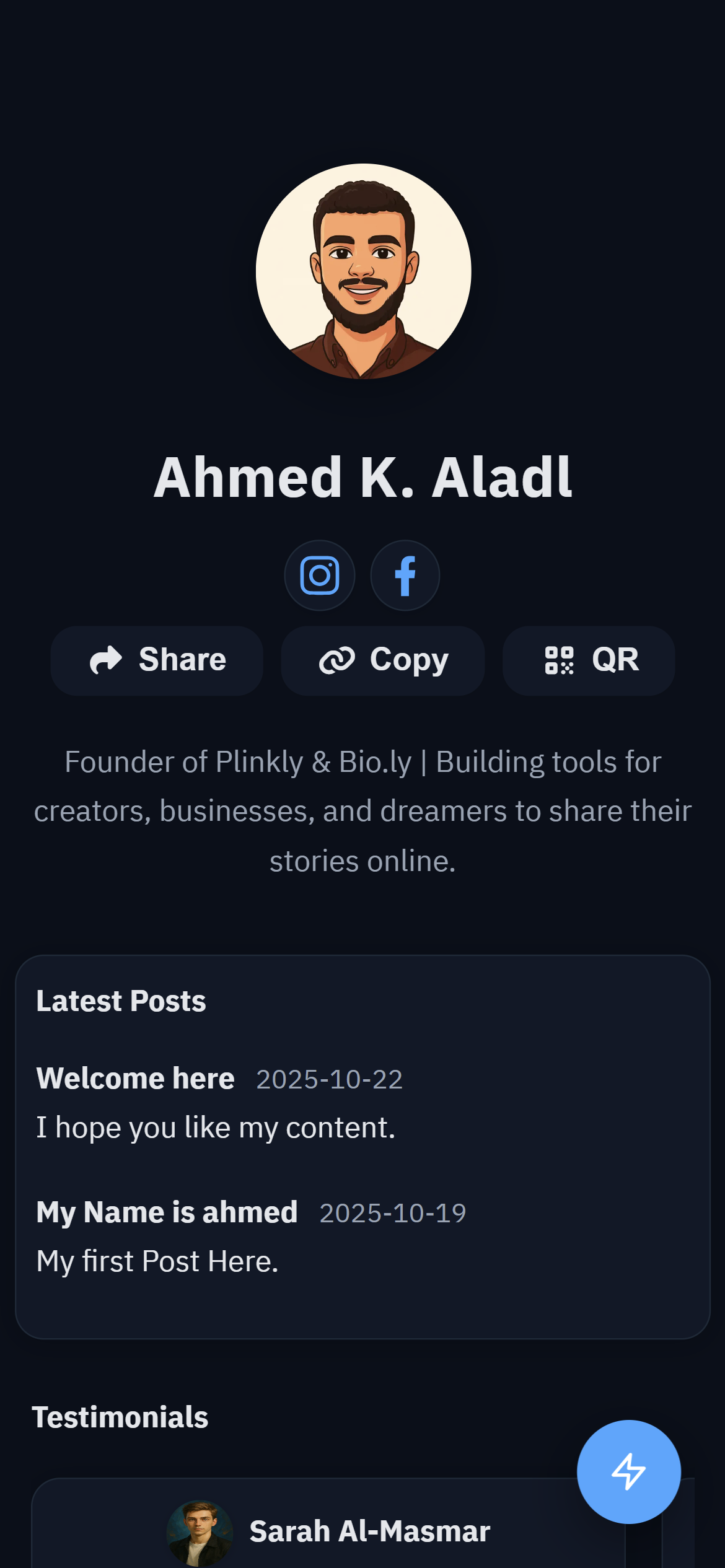 Most “link in bio” pages stop at links. Bio.ly adds structure—micro-posts, portfolio, testimonials, interests, and smart CTAs—so visitors know what to do next.